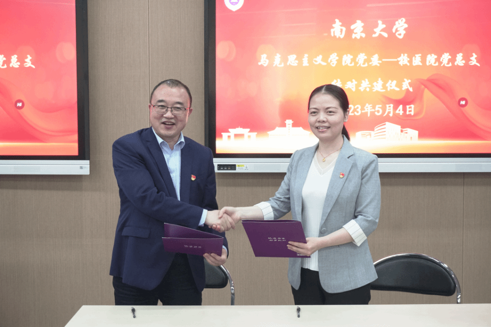 Pairing up for party building leads to progress, while attracting talent shapes the future. The CPC Committee of NJU School of Marxism and the General Party Branch of Nanjing University Hospital will work together to implement the guiding principles of the 20th National Congress of the CPC through fully playing the core and guiding role of primary-level Party building, with the aim to enhance their joint efforts of Party building by complementing each other’s strengths, sharing resources,negotiation, and cooperating in organizing activities.