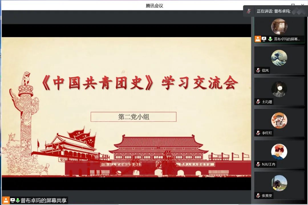 在深入交流的过程中,各党小组中的党员同志踊跃发言、各抒己见,其中不乏深刻的见解和思考。芦靖心同志发现,在中国共青团的百年历程中,中国共产党始终注重发挥青年群体的社会基础与运动先锋作用,使其在中国共产党整体战略中发挥变革社会与适应社会的功能定位。普布卓玛同志在认真学习全书主要内容的基础上,还从学术角度分享了自己对于本书的看法。她认为,本书作者不是孤立地为写团史而写团史,而是将团的活动和中国革命与建设历史的大背景紧密地联系起来,特别是和中共党史紧密地联系起来,实现了宏大叙事与微观表达的巧妙结合。
