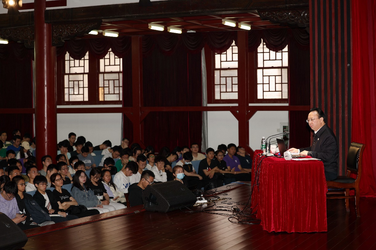 党委书记谭铁牛走进新生学院,为2022级本科新生带来题为“把握世界科技发展趋势 服务高水平科技自立自强”的“形势与政策”课。