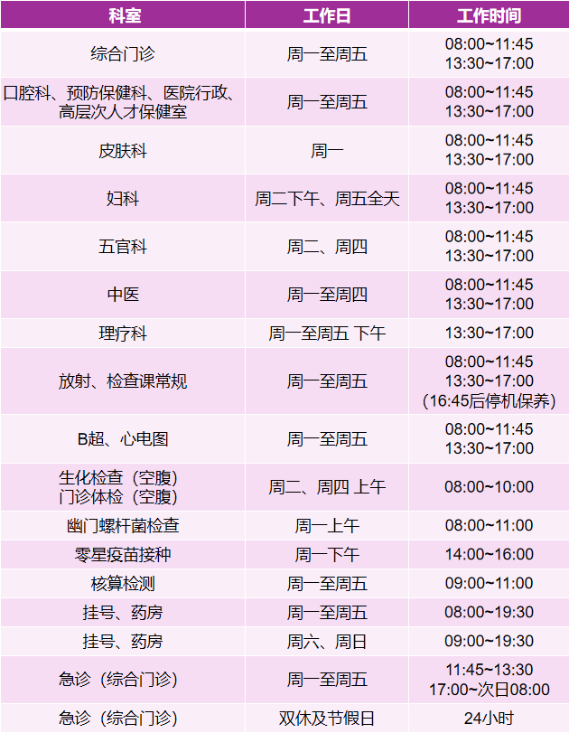 医院”。另外学校里还有一个医学院,二者易混淆。校医院正常开放时间如下: