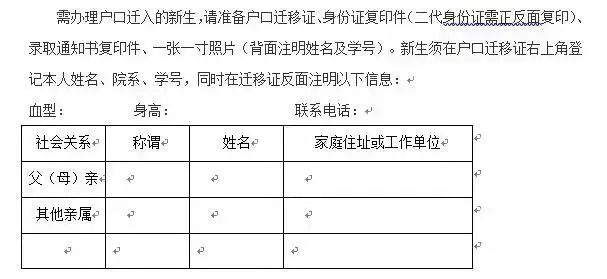 有需要的同学上交党员材料、低保证明复印件(右上角标注学号姓名)、生源地助学贷款回执单(右上角标注学号)、户口迁移(具体要求如下图)、走读申请等材料,均可在学院报到时提交给现场工作人员。