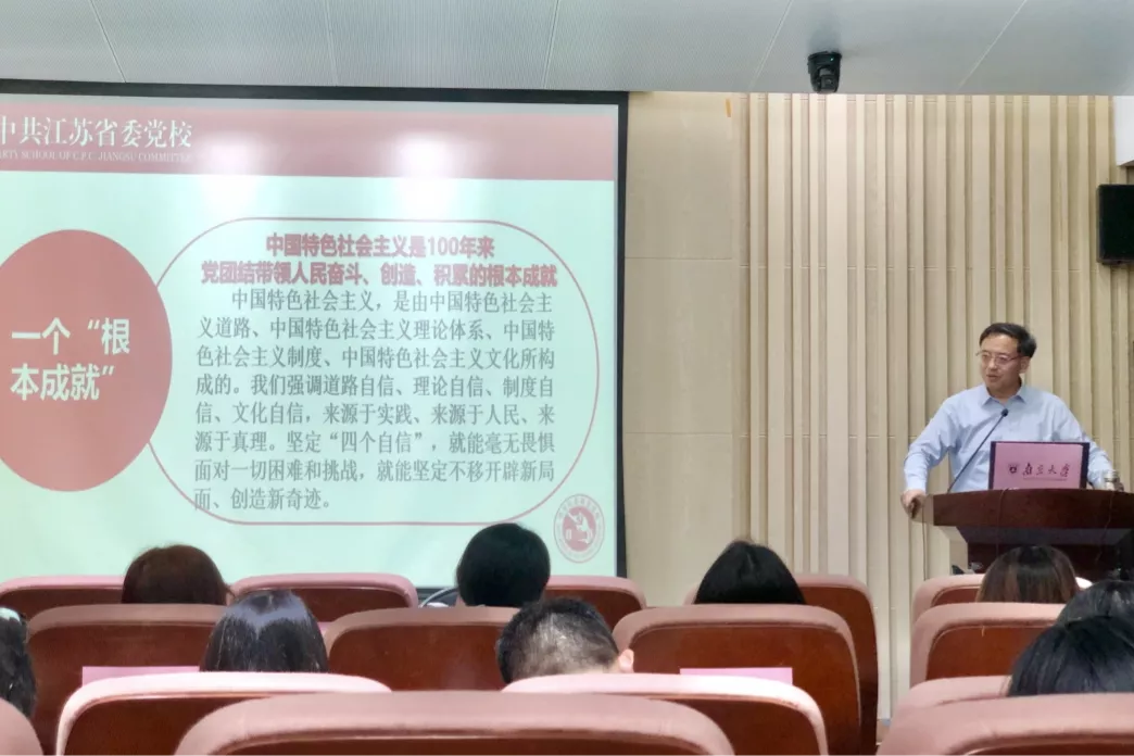桑学成教授以“百年大党与‘中国奇迹’——解码中国共产党为什么能”为题,从光辉的历程、伟大的贡献、历史的启示三个方面进行了深入阐述。