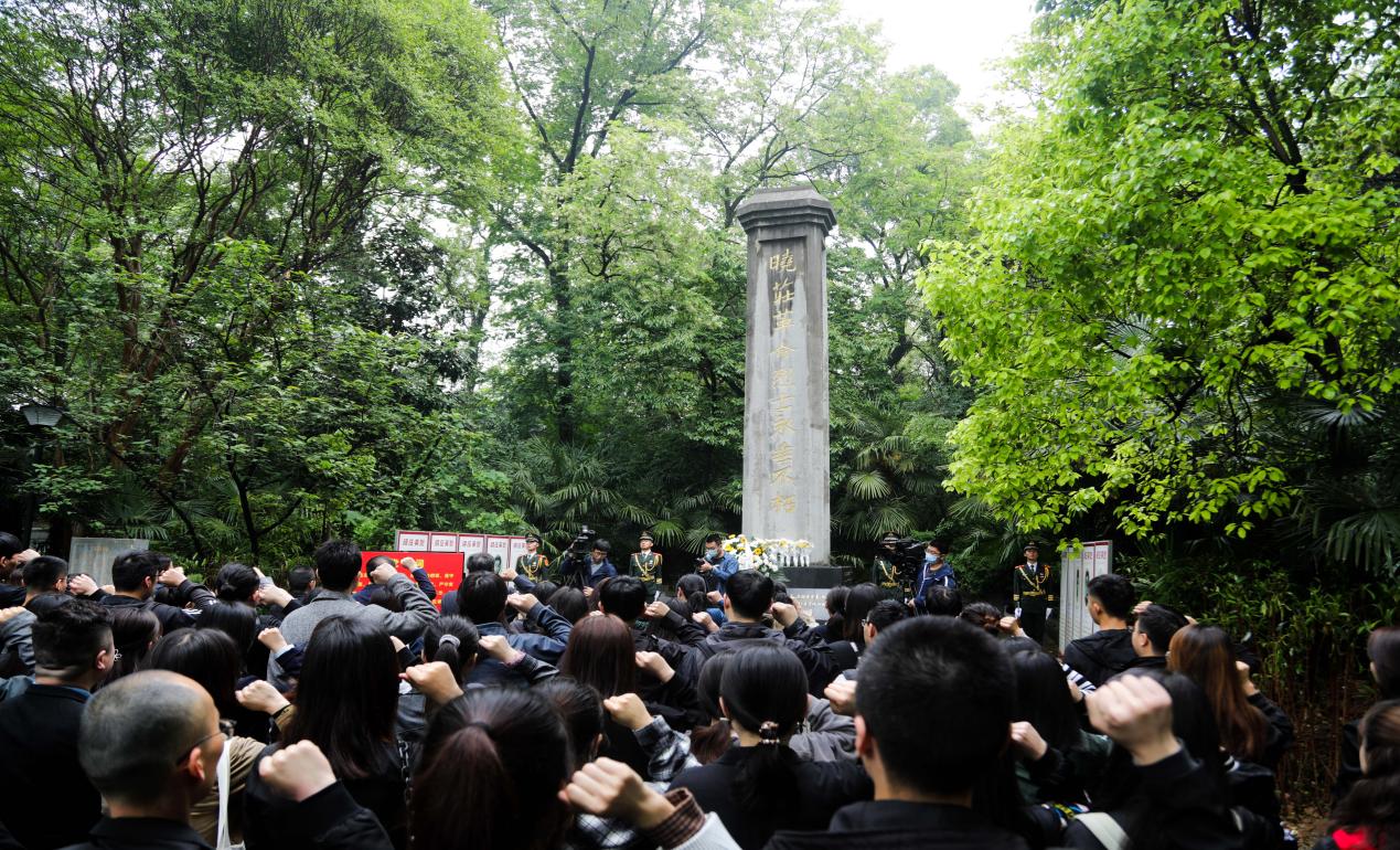 在晓庄革命烈士纪念碑前,全体师生代表共同听取了晓庄革命烈士事迹介绍,并向革命烈士敬献花篮,缅怀先烈,致敬英雄。近百名党员师生依次走上台阶,瞻仰革命烈士纪念碑、重温入党誓词。