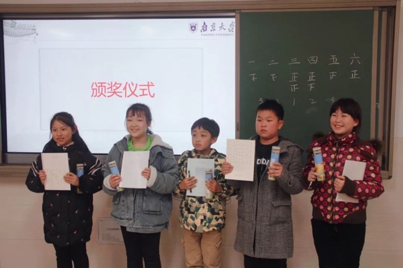 活动的最后,进入颁奖环节。小组成员给每一个学生都颁发小礼品并合影留念,着重表扬了孩子们的积极表现,并提出未来在南大相会的美好期许,孩子们也纷纷表示以后将坚持践行诚实守信的美好品德,做“信”文化的传承者。
