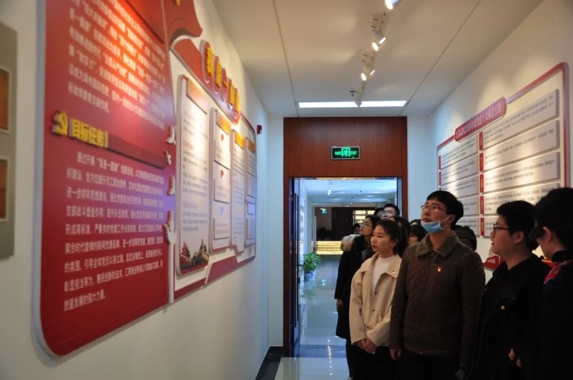 宣讲队成员参观企业运营环境与介绍企业党建成果。江苏高网第三党支部罗瑾同志结合参观内容总结分享了江苏高网的企业特色党建文化,如借助指南针创新创效工作室、书香读书分享会、“夺旗争优”班组竞赛等特色载体持续深入学习贯彻党的十九大精神。