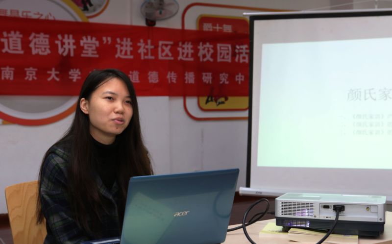 肖芬芳博士从学术的视角、以通俗的语言为在场居民讲授了《颜氏家训》中的家庭教育观。《颜氏家训》作为中国古代家庭教育理论宝库中的一份珍贵遗产,对当今家庭美德的建构有重要的借鉴意义。肖芬芳博士通过一个个有趣的故事,带领在场的居民学习了《颜氏家训》的部分内容,并紧密结合生活实践为大家诠释了古代的家训如何在现代社会灵活运用。居民们听后纷纷表示,肖博士的讲解生动具体、通俗易懂,大家从中收获良多,并期待着今后能有更多类似的讲座走近他们身边。