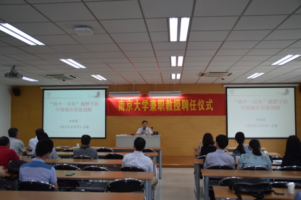 李程骅教授从自己的求学经历和现任工作细数自己与南大的历史渊源,紧接着,他围绕着近年来的研究方向做了题为《“两个一百年”视野下的中国城市发展战略》的报告。