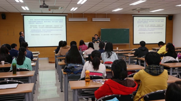 紧接着,陈教授以中宣部组编的《习近平总书记系列重要讲话读本》作为范本,为大家分析了习近平系列重要讲话精神的思想内涵。