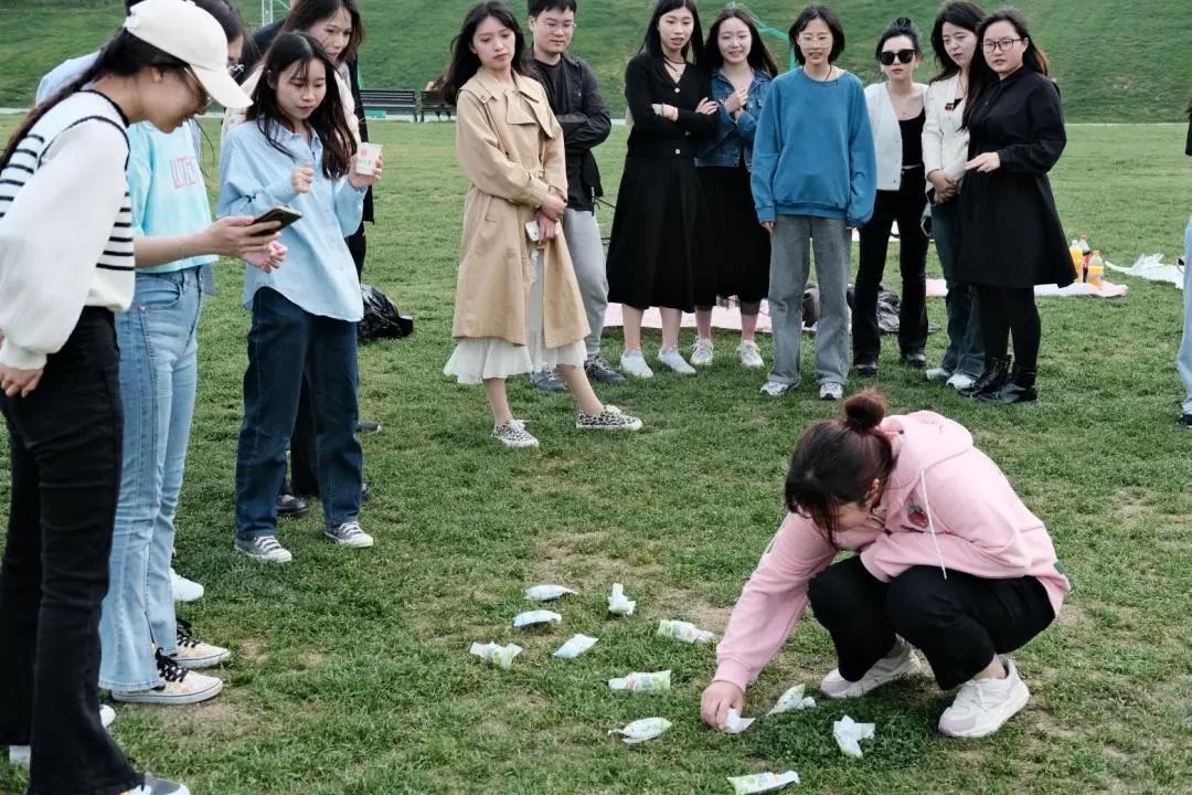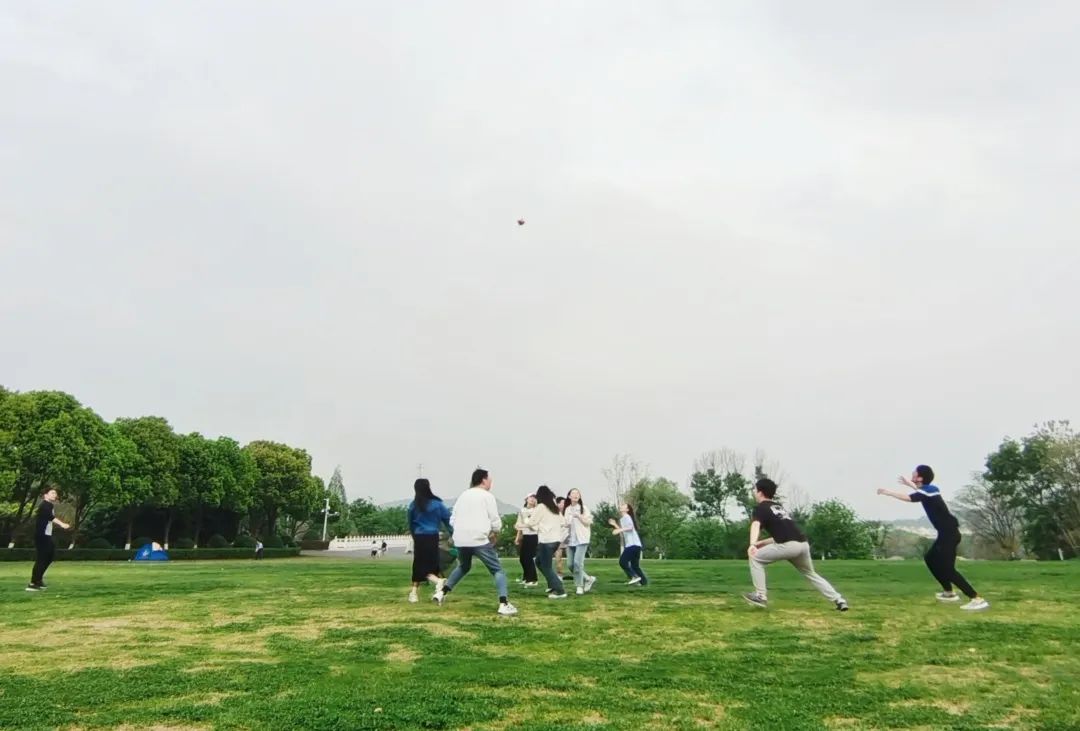 在集体互动环节过后,团建进入了纷繁多彩的自由活动环节。同学们凭个人兴趣三三两两组队活动。或是选择扔沙包、扔飞盘游戏,在集体竞技、奔跑呼喊中纾解郁结、助益身心;或是选择放风筝,在和煦春风中将一抹五颜六色画上天空;或是选择丰富多样的桌游游戏,在智力与反应力的角逐中,相互配合、相知相熟。