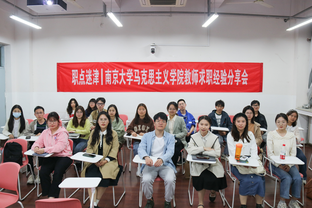 2020级马克思主义基本原理专业的何鑫乐学长及思想政治教育专业的徐金婷学姐进行分享,会议由董梦圆同学主持。两位学长学姐从招考条件、信息获取、择校考量及笔面试准备等方面,对中学教师招聘进行多维分析,向参会同学传授求职经验。在结构化面试模拟环节,两位学长学姐通过一对一面试辅导的方式,在实战演习中传授面试技巧。