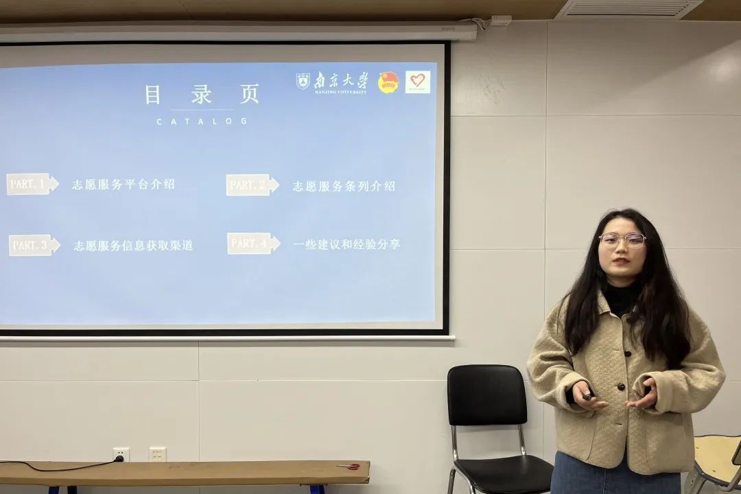 “全青实习岗”,鼓励同学们走出课堂,用脚步丈量祖国大地。针对如何更好开展高质量的志愿活动,现任校团委志愿服务部副部长贾姣妹同学详细介绍了我校志愿服务平台和志愿信息获取渠道,并建议大家以团学组织协作的方式开展志愿活动,让团员青年在服务中真切感受志愿精神的深刻内涵。