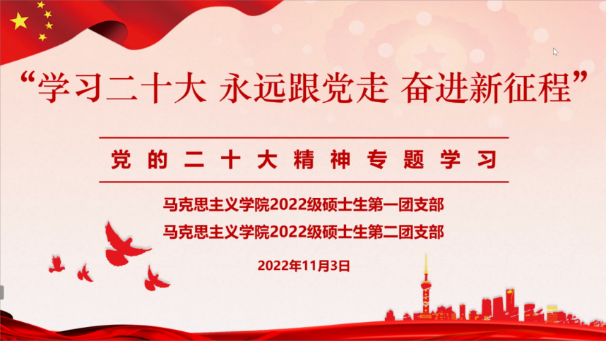 2022级硕士生第一团支部、2022级硕士生第二团支部开展“学习二十大 永远跟党走 奋进新征程”党的二十大精神专题学习活动。本次活动采用线上形式,由2022级硕士生第一团支部书记邵嘉曌主持,污污漫画