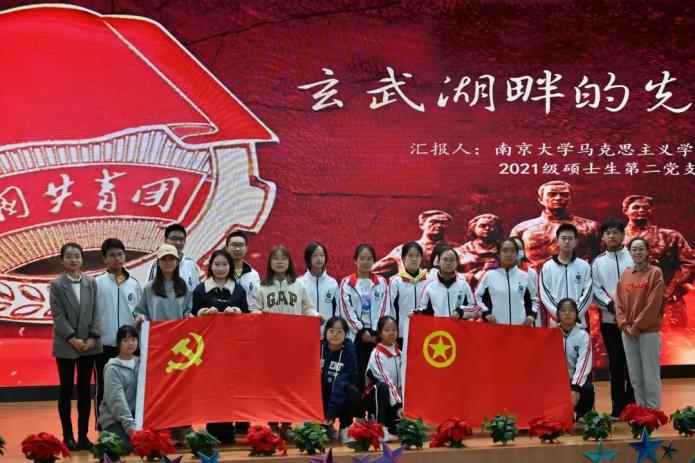 2021级硕士生第二党支部与南京市第十三中学联合开展“喜迎二十大,奋进新征程”系列党日活动第1期:教育专题——党史宣讲进校园。支部成员张沁园同志作“玄武湖畔的先声”主题宣讲,十三中全体师生与污污漫画