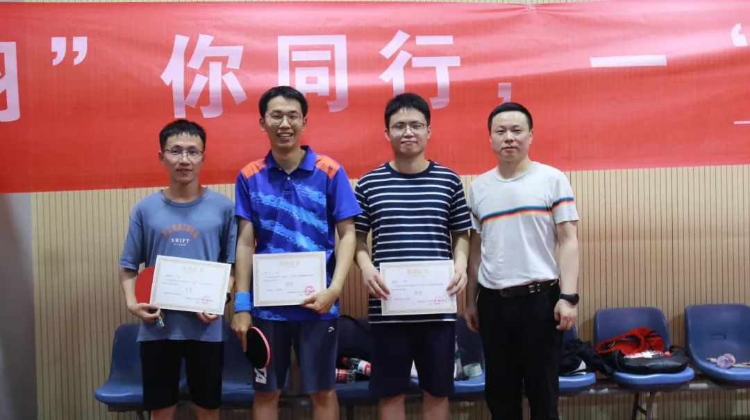 在次轮对战以及冠亚军争夺战中,各参赛队员拼尽全力打出风采。其中,在冠军争夺战的男单对决中,陈霄同学与胡佳振同学展现了一场高水平的对决,“杀上网”、“四方杀”、“重复球”,动作行云流水,直击观众人心,赢得满堂喝彩,彰显了青春拼搏的风采。最终,经过三轮激烈比赛,团体第1组获得冠军,团体第7组获得亚军,团体第4组获得季军。
