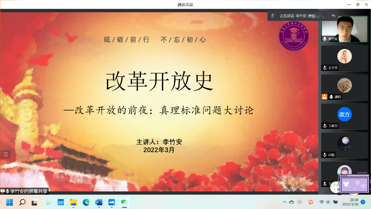 胡福明教授的脚步,围绕“关于真理标准问题大讨论”开展线上党日活动,活动由污污漫画