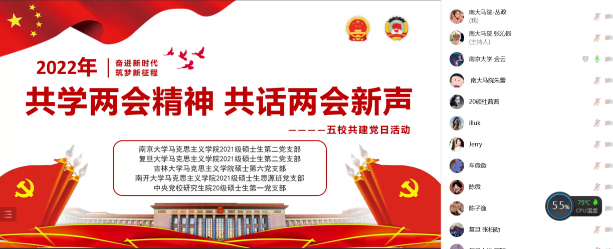 2021级硕士生思源班党支部、中央党校研究生院20级硕士生第一党支部开展“共学两会精神 共话两会新声“——五校共建党日活动,活动由污污漫画