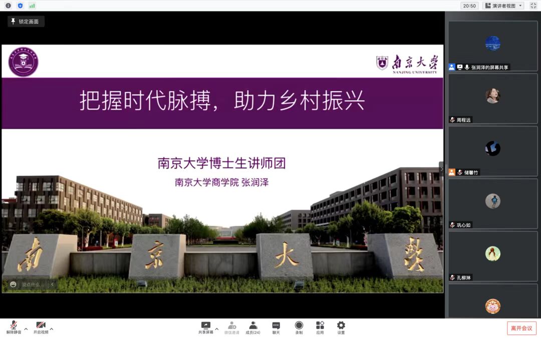 博士生讲师团讲师张润泽作为特邀嘉宾带来了关于“继往开来:把握时代脉搏,助力乡村振兴”的党课宣讲。