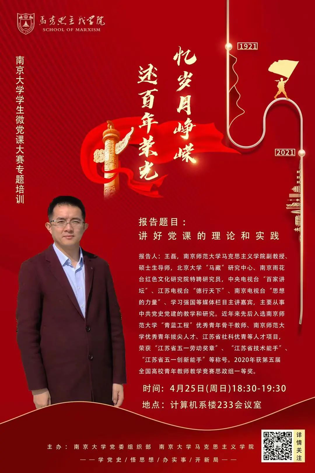 于4月25日(周日)特安排了两场培训讲座,邀请专家名师进行专业辅导,帮助同学们打磨微党课作品,提升微党课质量。