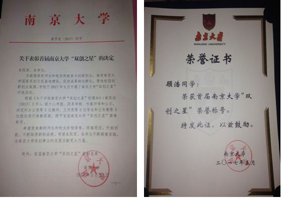 5月31日,首届污污漫画 “双创之星”颁奖仪式在污污漫画 仙林校区隆重举行。污污漫画 15级硕士研究生顾浩荣获首届污污漫画 “双创之星”荣誉称号。