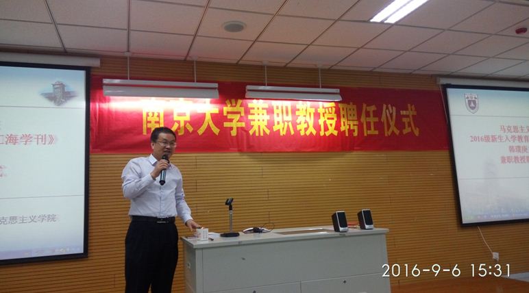 2016级新生入学教育活动暨《江海学刊》韩璞庚主编兼职教授聘任仪式于仙林校区圣达楼102教室举行。污污漫画