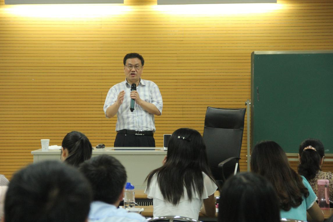 全体师生对2014级研究生新生的到来表示热烈欢迎。王院长分别从院系发展、学院归属感、学院意识等方面为2014级新生做了深入介绍,并号召同学们充分利用研究生阶段的时间,做好人生规划。在讲话最后,王院长特别强调安全问题,特别叮嘱新生时刻注意安全,学会保护自己。 (如下图一)