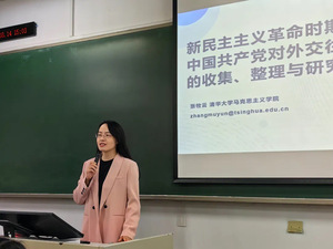 暨中共党史党建研究院副教授周瑞瑞老师主持本次讲座。周瑞瑞老师首先向与会师生介绍了张老师的学术履历,并对张老师的到来表示热烈欢迎。张老师本次讲授的主题是:新民主主义革命时期中国共产党对外交往历史文献的收集、整理与研究。