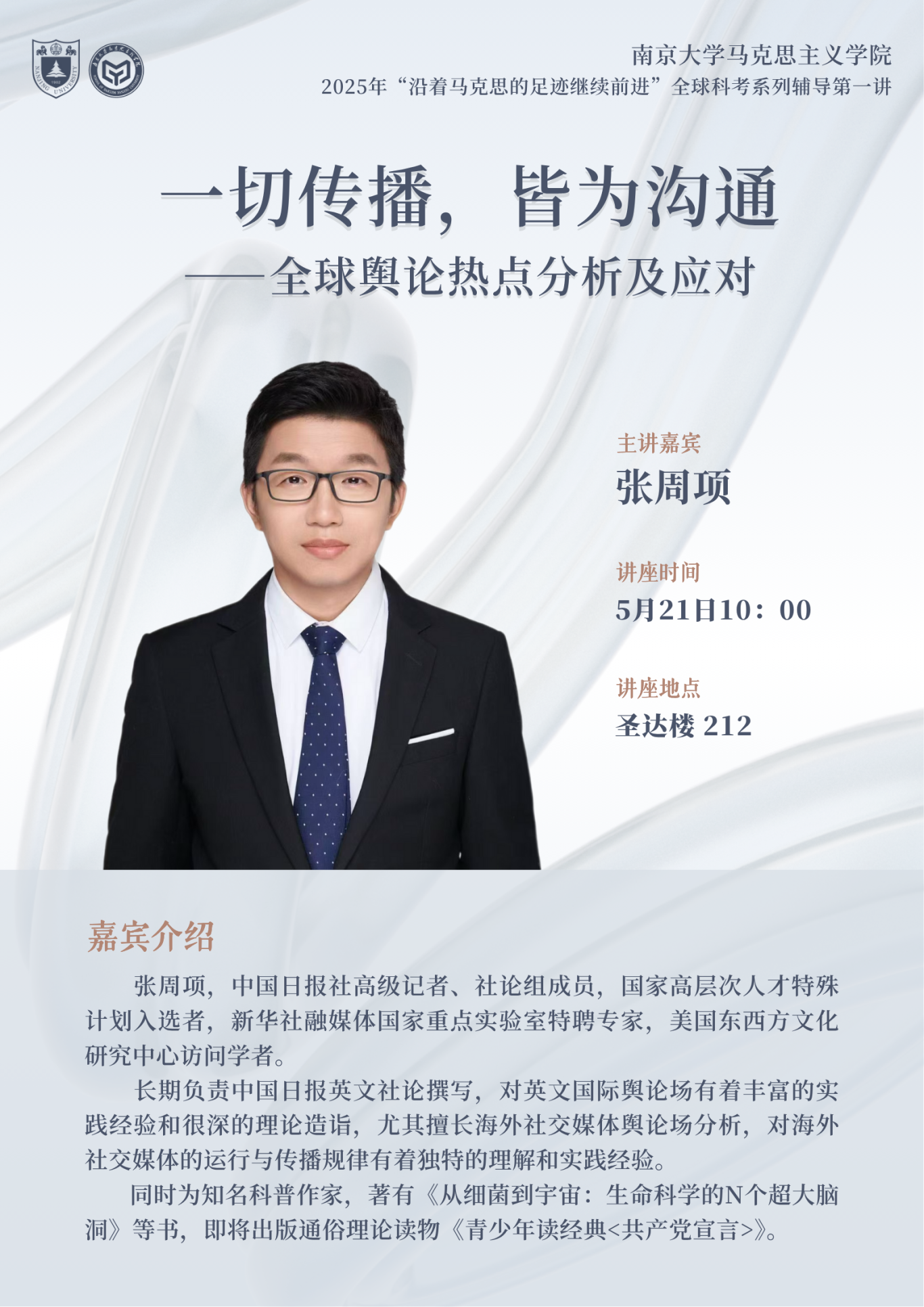 张周项,中国日报社高级记者、社论组成员,国家高层次人才特殊计划入选者,新华社融媒体国家重点实验室特聘专家,美国东西方文化研究中心访问学者。
