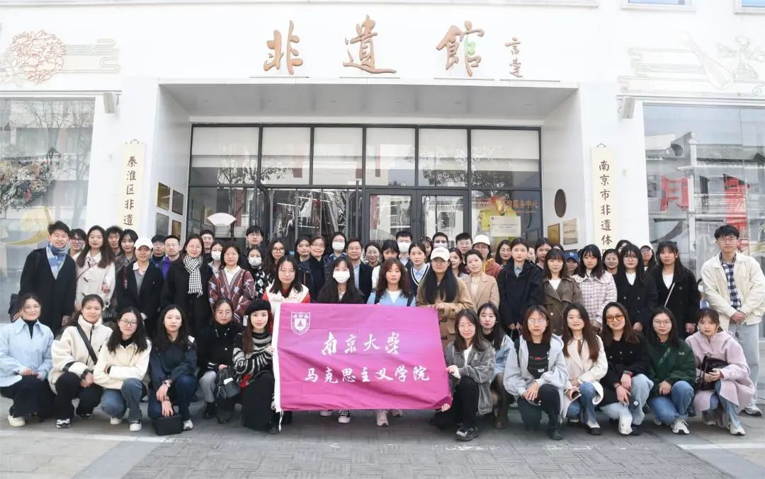 Faculty and students from the School of Marxism in front of the Qinhuai Intangible Cultural Heritage Museum