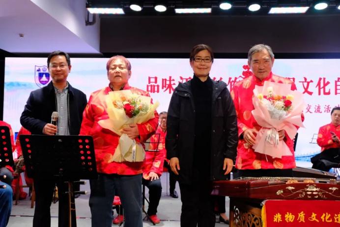 In addition, Prof. Bao Qinggang and Prof. Dai Xuehong also expressed their gratitude to the Jiangnan Sizhu Ensemble of Nanjing Music Society and the organizer, Qinhuai Intangible Cultural Heritage Museum, by presenting gifts.