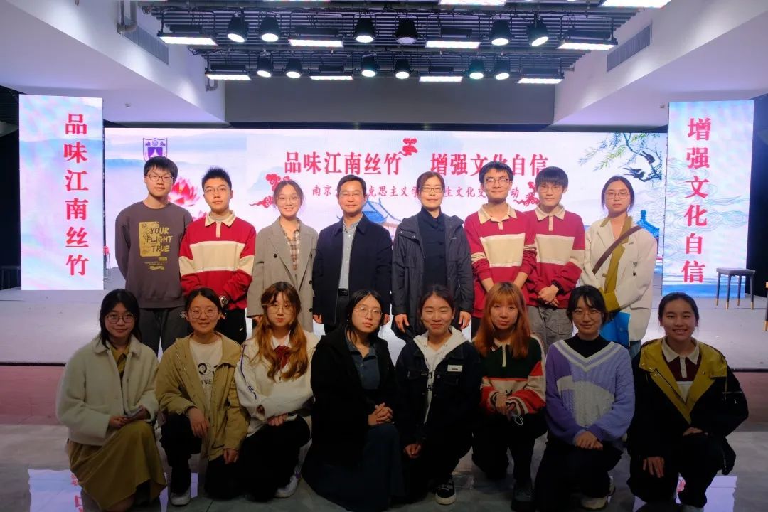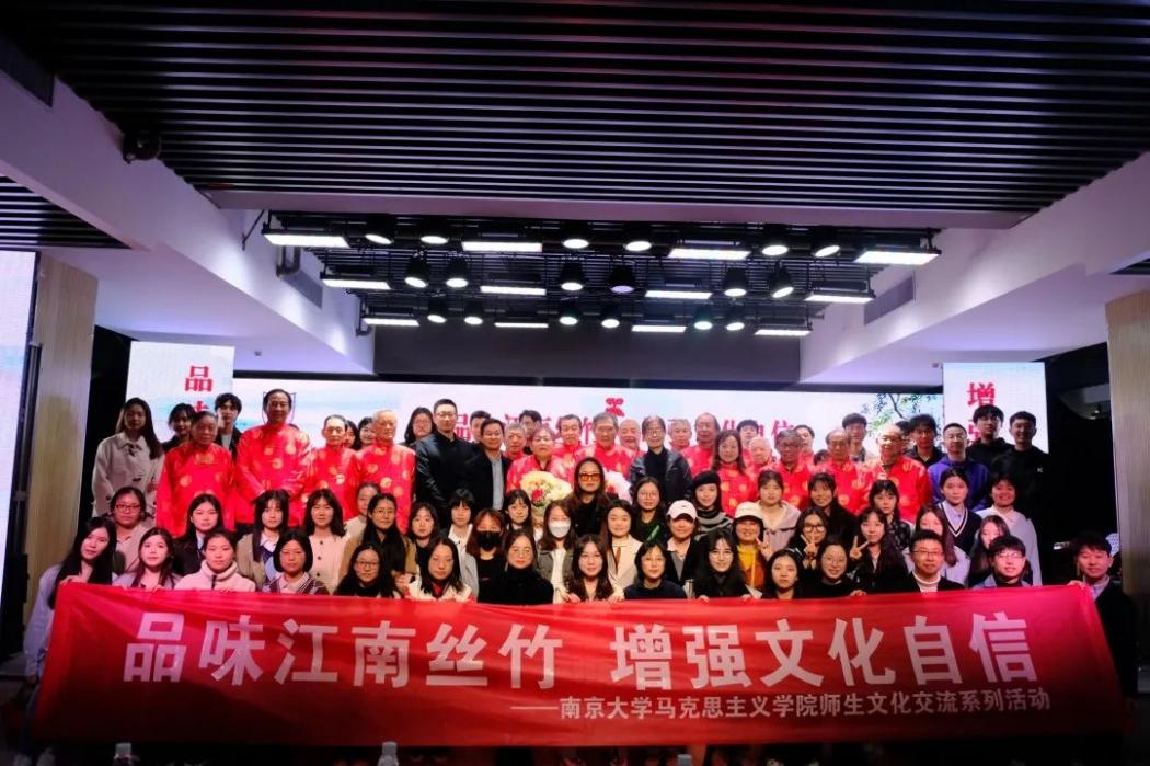 Water ripples over Qinhuai River. Jiangnan Sizhu chants archaic music.” More than 80 undergraduates, postgraduate and doctoral students from the School of Marxism at Nanjing University visited the Qinhuai Intangible Cultural Heritage Museum and attended a concert for Jiangnan Sizhu (Nanjing’s intangible cultural heritage) on the afternoon of March 12. The activity, planned and led by Prof. Bao Qinggang and Prof. Dai Xuehong, two undergraduate mentors of Class  2022 from the School of Marxism, aimed at enabling students to better understand and thoroughly implement the guiding principles of the 20th National Congress of the CPC, to enhance the quality of aesthetic education, and to build up firm confidence in Chinese culture. The group visited the museum and obtained an understanding of Nanjing’s intangible cultural heritage. The performing group in the concert was the Jiangnan Sizhu Ensemble of Nanjing Music Society, one of China’s top four music societies. The lead performers were Mr. Gan Fan, a famous Erhu player and the son of Chinese folk maestro Gan Tao, and Mr. Li Jiazhen, a well-known Yangqin player. Mr. Jiang Nan, deputy curator of the Qinhuai Intangible Cultural Heritage Museum, attended the activity.