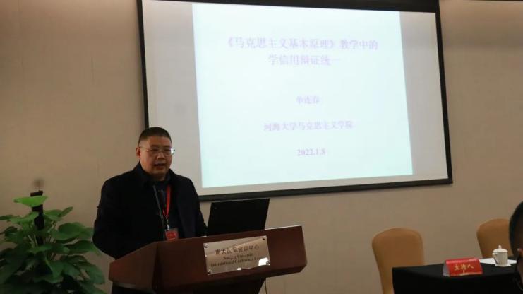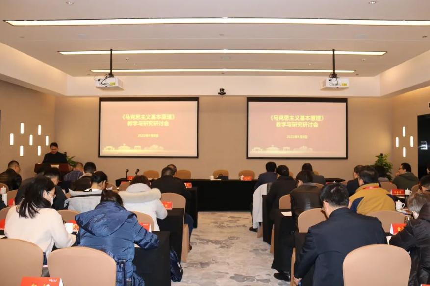 The Seminar on the Teaching and Research of the Basic Principles of Marxism was held as scheduled at the International Conference Center of Nanjing University on January 8, 2022, with the aim of promoting  the teaching quality of the course “Basic Principles of Marxism” and improving theoretical research on the basic principles of Marxism in colleges and universities in Jiangsu Province, as well as strengthening the communication among the backbone teachers and researchers specializing in Marxism in Jiangsu province. The seminar was co-sponsored by the School of Marxism at Nanjing University (NJU), the School of Marxism at Nanjing University of Chinese Medicine (NJUCM), the School of Marxism at Nanjing University of Posts and Telecommunications (NJUPT), and the Research and Learning Platform of online academic database CNKI. More than 90 teachers from universities in Jiangsu province attended the event.